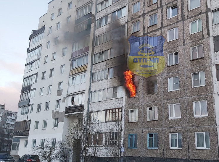 Прошлой ночью в Мурманске в девятиэтажном доме №25 по улице Зои Космодемьянской произошёл пожар. Горела квартира на третьем этаже.