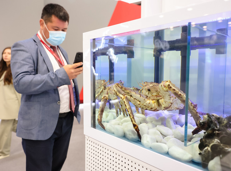 В аквариуме гости форума могут увидеть морских ежей, гребешки и большого камчатского краба