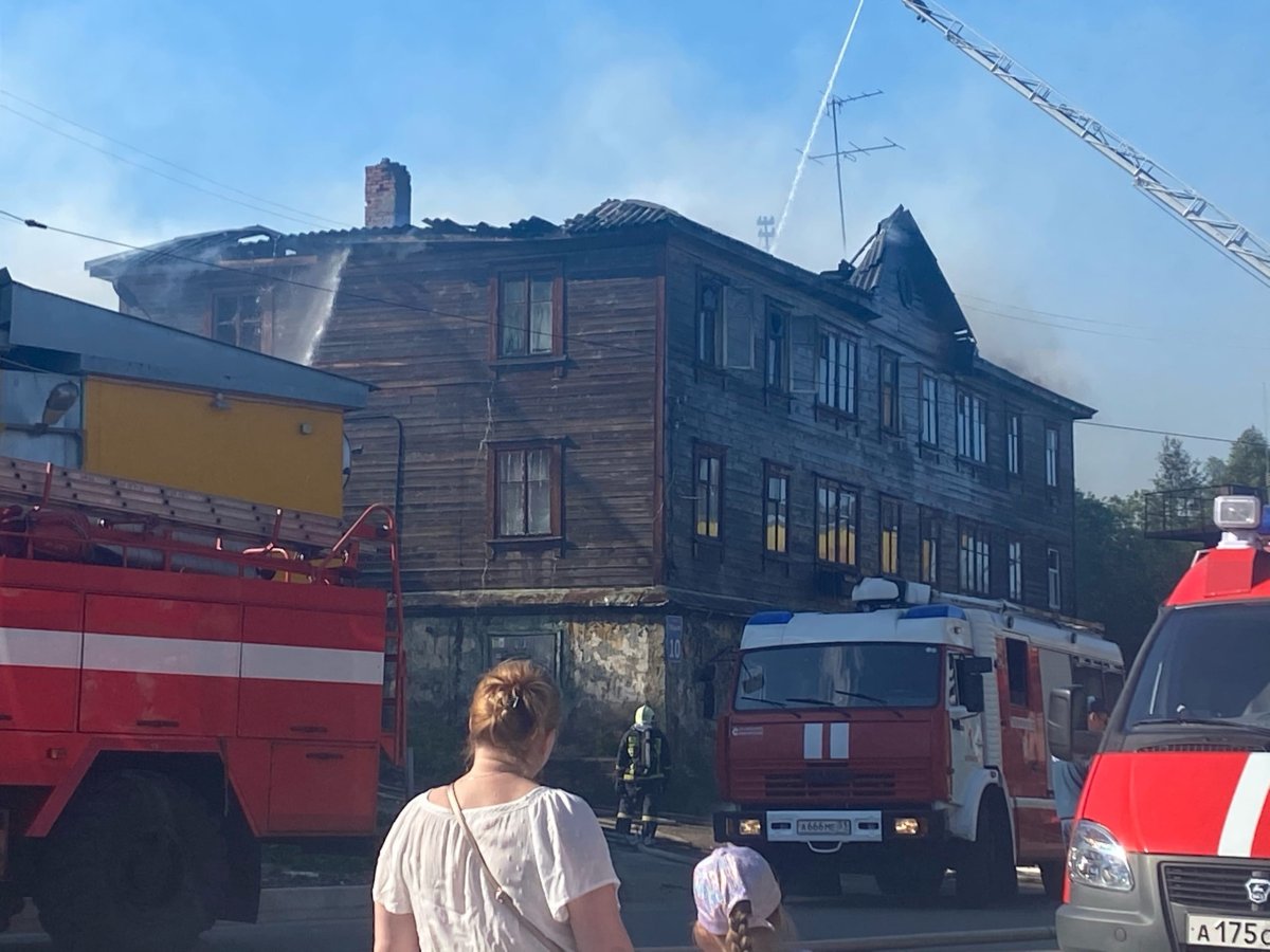 В Мурманске на улице Марата, 10 горит двухэтажный деревянный жилой дом. У него обрушилась кровля. Сотрудники МЧС ликвидируют пожар, сообщили в ГУ МЧС по Мурманской области.