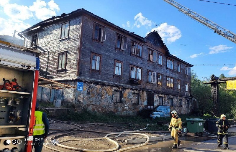 В Мурманске на улице Марата 12 июня горел двухэтажный деревянный дом. Пожар ликвидировали. Жильцам дома предоставят временное жилье.