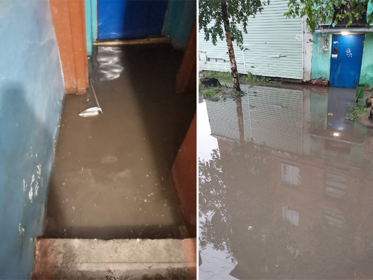 В доме №4 на улице Спекова в Кандалакше случился настоящий потоп. Судя по фотографиям, размещенным в группе «ВКонтакте» «Кандалакша вкурсе», вода стоит на придомовой территории и в подъездах.