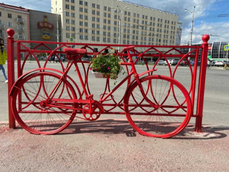 Так называемый народный арт-объект появился в центре Мурманска. Неизвестный прикрепил велосипед с кашпо к секции забора на перекрёстке проспекта Ленина и улицы Воровского. Композицию автор покрасил в ярко-красный цвет.