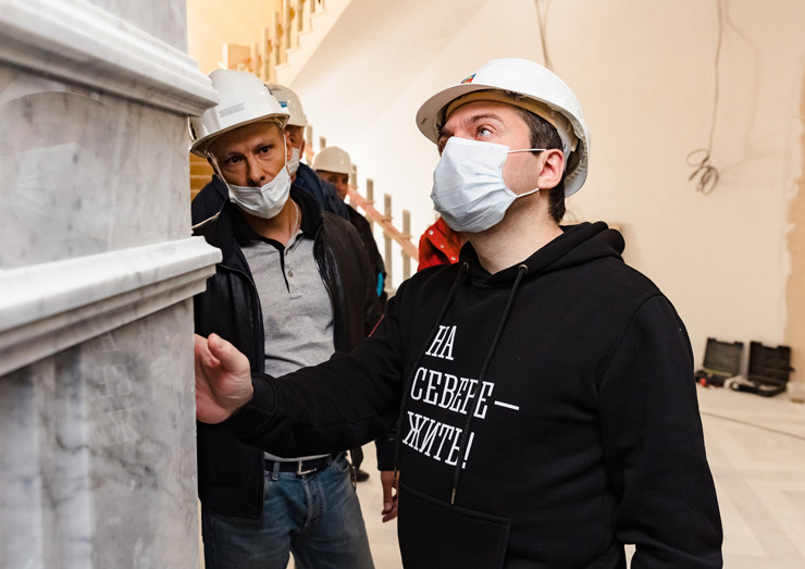 «В настоящее время ремонтные работы идут в соответствии с теми сроками, которые мы актуализировали. Все материалы, которых не хватало, доставлены, задержки, связанные с пандемией, с недостатком рабочей силы, сейчас устранены. Тяжёлый проект, но очень рассчитываем, что в этом году мы увидим здесь премьеру», – отметил Андрей Чибис.