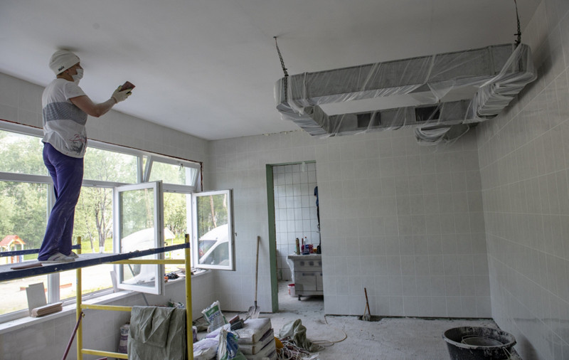 В Мурманске в детском саду №85 на улице Гаджиева ведется капитальный ремонт пищеблока. Мэр города Андрей Сысоев посетил учреждение и заявил, что работы ведутся строго по графику.