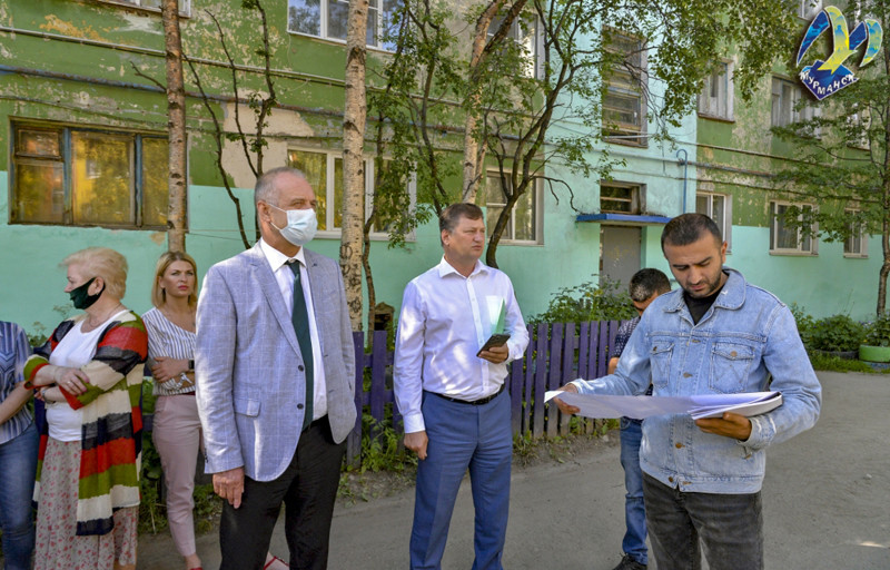 Ремонт дворовых территорий выполняется по программе «Формирование современной городской среды на территории муниципального образования город Мурманск». Техническим заданием здесь предусмотрен ремонт проезжей части и пешеходных дорожек, посев газонов, устройство автомобильной парковки и установка детской площадки.