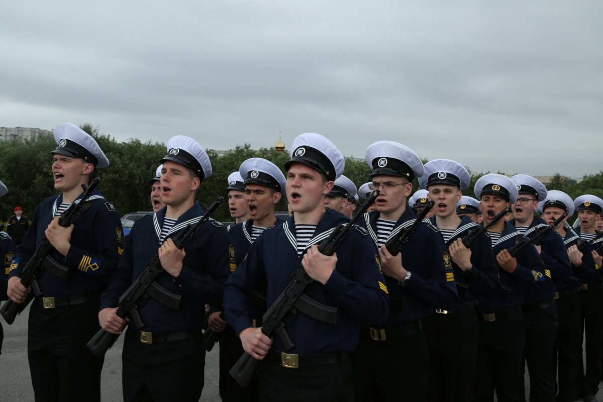 Военную присягу приняли 54 курсанта военной кафедры МГТУ на площади Мужества в Североморске. Сейчас они проходят первую войсковую практику на кораблях Северного флота. В течение месяца на практике они знакомятся с азами военной службы, изучают общевоинские и корабельные уставы, устройство корабля. Живут в матросских кубриках, питаются вместе с моряками и участвуют в корабельных работах. Сейчас курсанты занимаются подготовкой кораблей к Дню военно-морского флота.