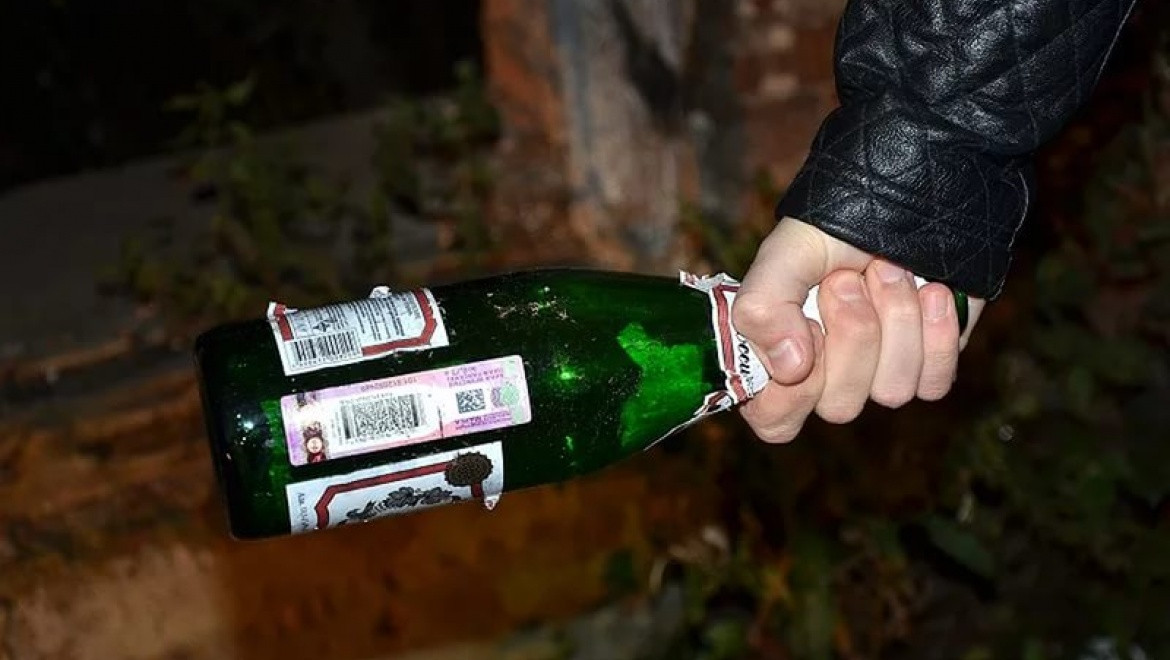 Он несколько раз ударил потерпевшего по голове бутылкой из-под шампанского