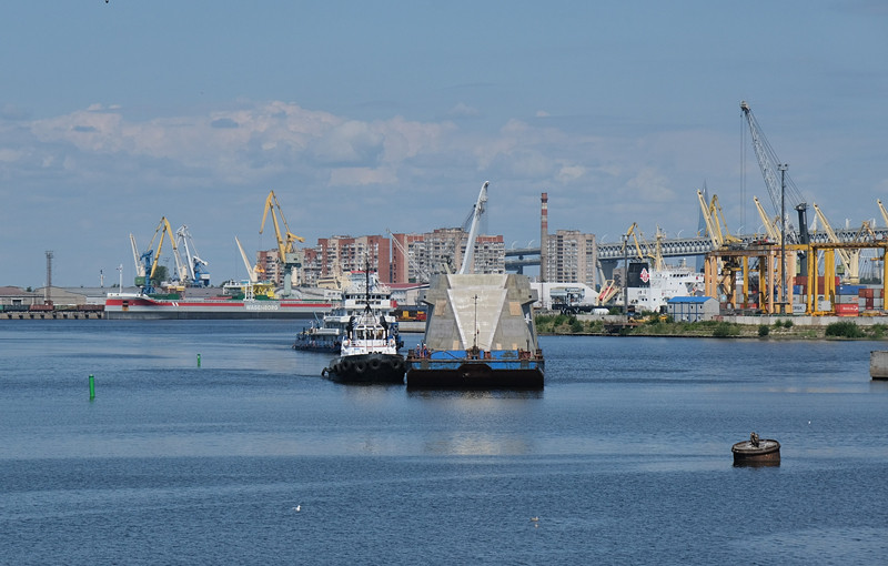 Операция выгрузки надстройки продолжалась в течение нескольких часов. Сначала баржу завели в заводской плавучий док, а затем её установили на «постели» – специальные опоры. Откачав из дока воду, подняли его в один уровень со стапелем. После этого под баржу установили судовозные тележки и выкатили ее на стапель, где с помощью двух кранов переместили надстройку на площадку для дальнейшей работы по внутреннему насыщению.