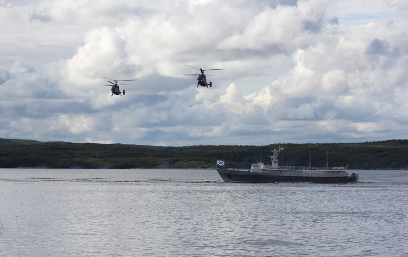 Экипажи кораблей соединений Кольской флотилии и эскадренного миноносца «Адмирал Ушаков», вертолётчики и морские пехотинцы отрабатывали эпизоды праздника.