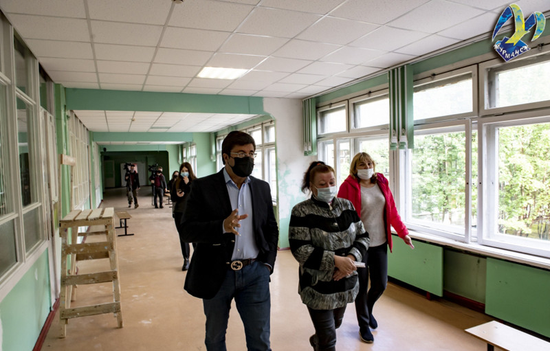 Ход ремонтных работ в гимназии и готовность образовательного учреждения к новому учебному году проверил глава администрации Мурманска Евгений Никора. Он обратил внимание на старый фундамент на пришкольной территории. Часть сооружения используется под склад, другая - полностью разрушена.