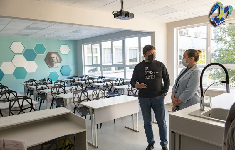 Будущее преобразование школьного пространства оценили глава администрации города Мурманска Евгений Никора и министр образования и науки Мурманской области Ольга Дзюба.