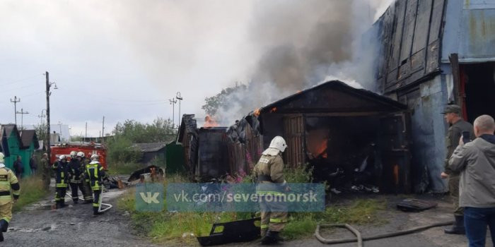 В гаражном кооперативе Североморска на улице Авиаторов произошёл пожар. Огонь охватил пять строений. В результате возгорания сгорели гаражи, а также находящееся внутри имущество. Владельцы оценили ущерб в сотни тысяч рублей.