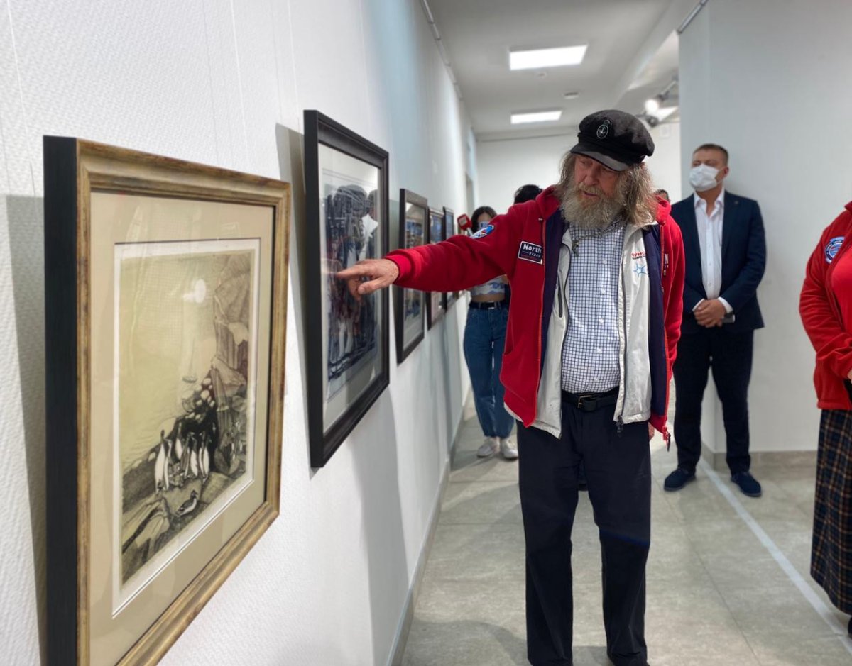 Напомним, Фёдор Конюхов прибыл в Мурманск 2 августа на ледоколе «50 лет Победы» из одиночной экспедиции на дрейфующей льдине. Там он пробыл более 245 часов, повстречал нерпу и написал семь этюдов.