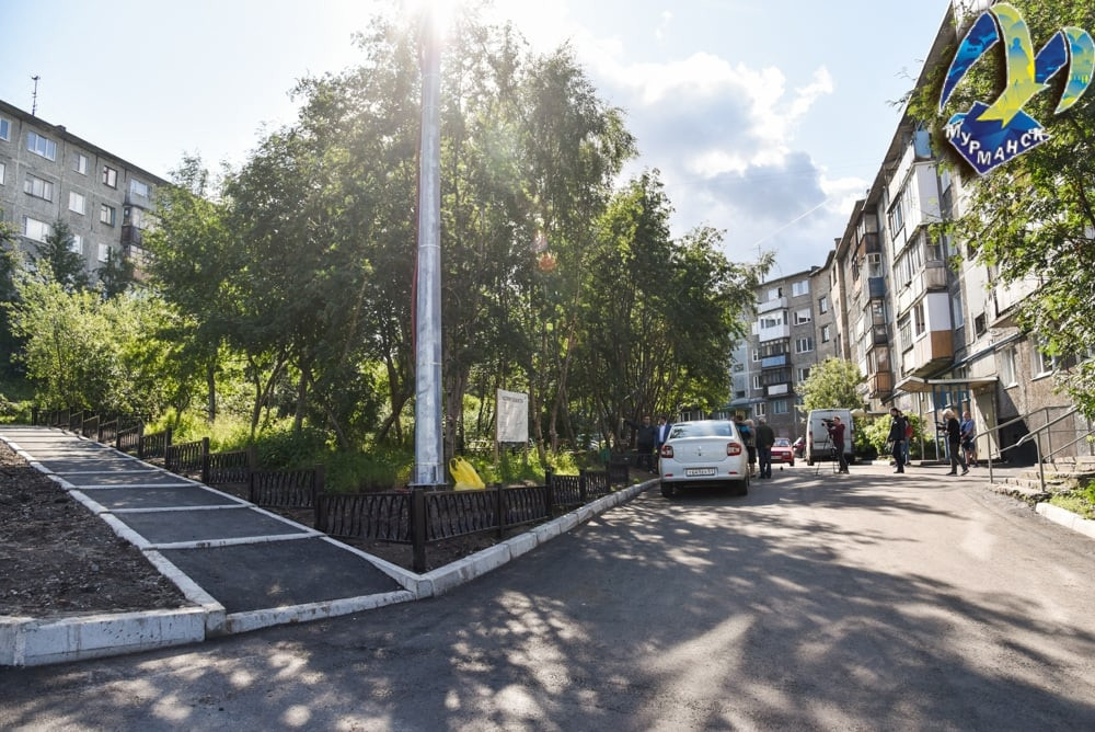 В Мурманске в рамках национального проекта «Жилье и городская среда» завершилась реконструкция двора на улице Александрова, 30 корпус 3. Накануне заместитель председателя Совета депутатов города Мурманска Тамара Прямикова совместно с заместителем главы администрации города Мурманска – председателем комитета по развитию городского хозяйства Эдуардом Кольцовым подвели итоги проделанных работ.