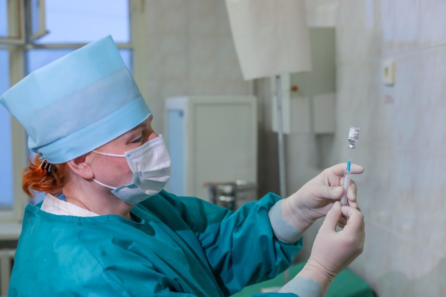 Вакцинация сотрудников и членов их семей проходит в филиалах госпиталя ФГБУ "1469 ВМКГ" Северного флота, в городских поликлиниках, в мобильных пунктах вакцинации в Мурманске и Мурманской области.