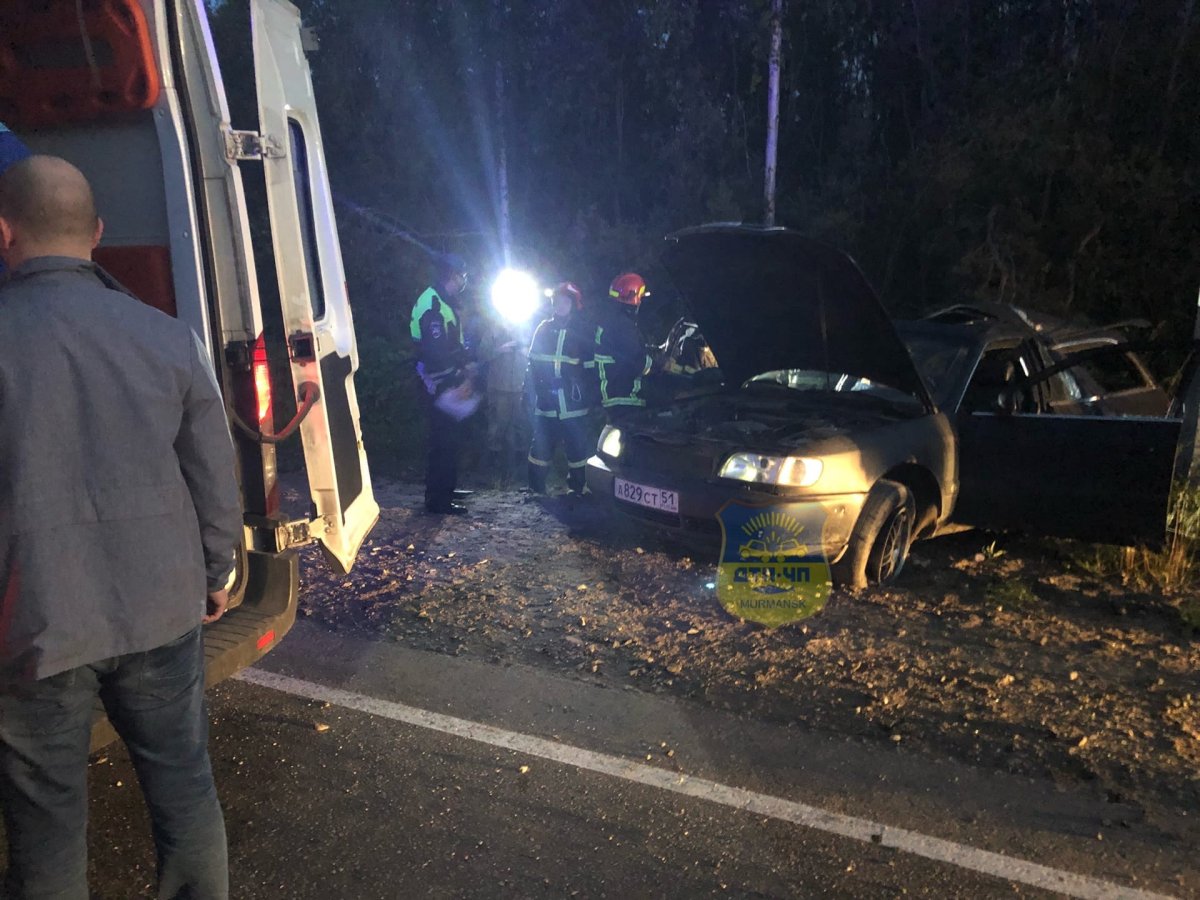 Ночью 14 августа в Апатитах произошло ДТП с пострадавшими. Водитель автомобиля Audi не справился с управлением врезался в опору уличного освещения.
