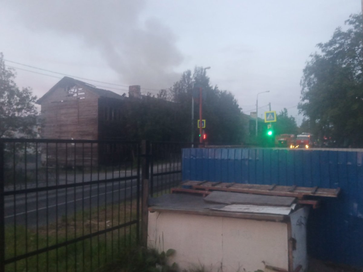 Сегодня ночью в Мурманске горело нежилое двухэтажное деревянное здание. О пожаре на улице Калинина, 15, стало известно в 00:53.