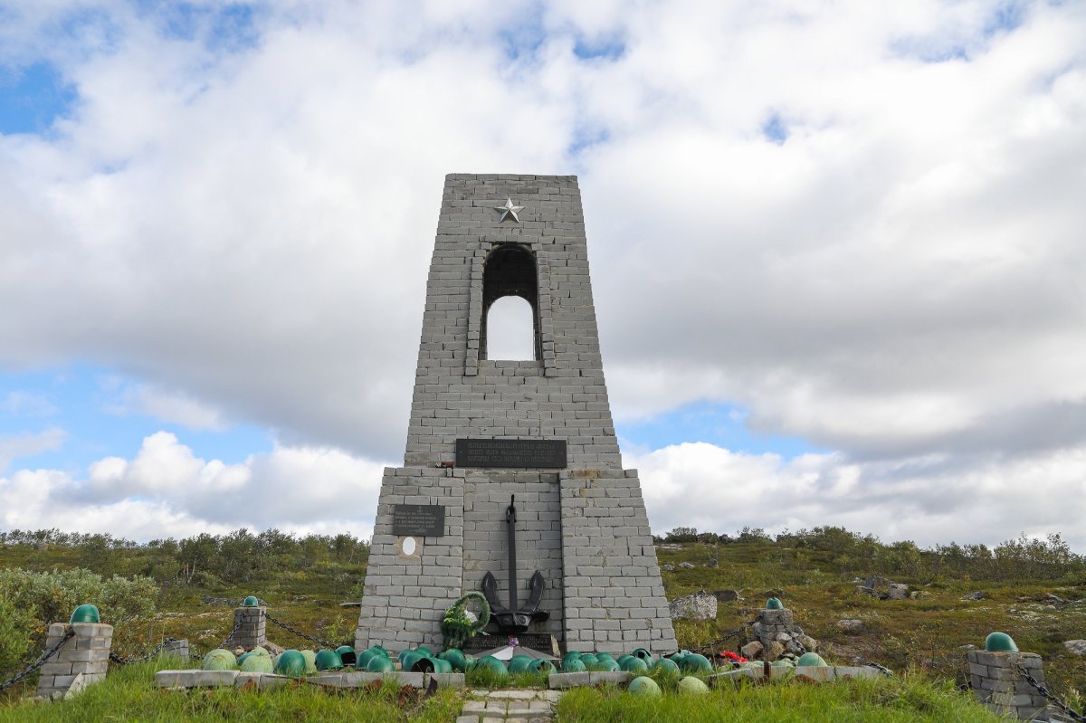 Однако перед этим детям сотрудников Мурманского морского торгового порта рассказали про историю этого места. Вершина сопки изрыта многочисленными воронками и буквально на каждом шагу попадается напоминание о тех страшных событиях. В годы Великой Отечественной войны на высоте 258,3 шли ожесточенные бои. Вскоре после начала боевых действий на Кольском полуострове – 14 июля 1941 года ее заняли немцы. Между тем высота была стратегически важна, поскольку господствовала над правым берегом Западной Лицы. Спустя пять месяцев советскими солдатами удалось ее отбить. В течение 11 суток высота переходила из рук в руки. Защитники советского Заполярья потеряли здесь 1156 человек убитыми, 2235 ранеными и пропавшими без вести. 1 января 1942 года немцы снова овладели высотой и не покидали ее до октября 1944. Тогда, в ходе начавшейся Петсамо-Киркенесской операции, они, остерегаясь окружения, покинули высоту без боя. Погибшие там морские пехотинцы и воины 52-й дивизии все послевоенные годы оставались лежать на поле боя. Сбором и захоронением их останков поисковики во главе с Львом Журиным смогли заняться лишь в 1980 году. Спустя еще семь лет на месте захоронения советских воинов сотрудниками Мурманского морского торгового порта был установлен этот памятник.