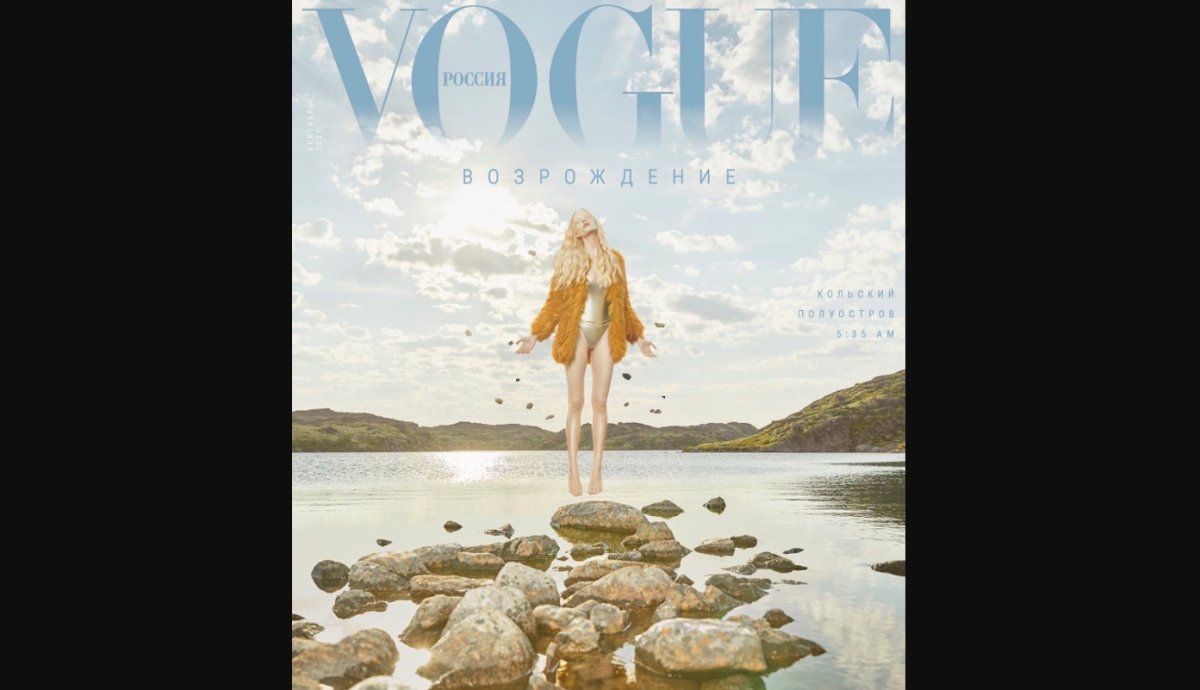 "Обложку мы сняли на Кольском полуострове. В начале июля в Мурманской области белые ночи - солнце не заходит. В команде Vogue, экипированной как для высадки на Марс, было двенадцать человек. За пять дней они спали от силы двадцать часов", - рассказала она в колонке редактора.