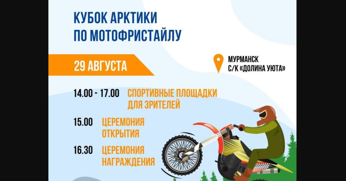 В воскресенье, 29 августа, в Мурманской области впервые состоится Кубок Арктики по мотофристайлу. Соревнования пройдут в Долине Уюта Мурманска.