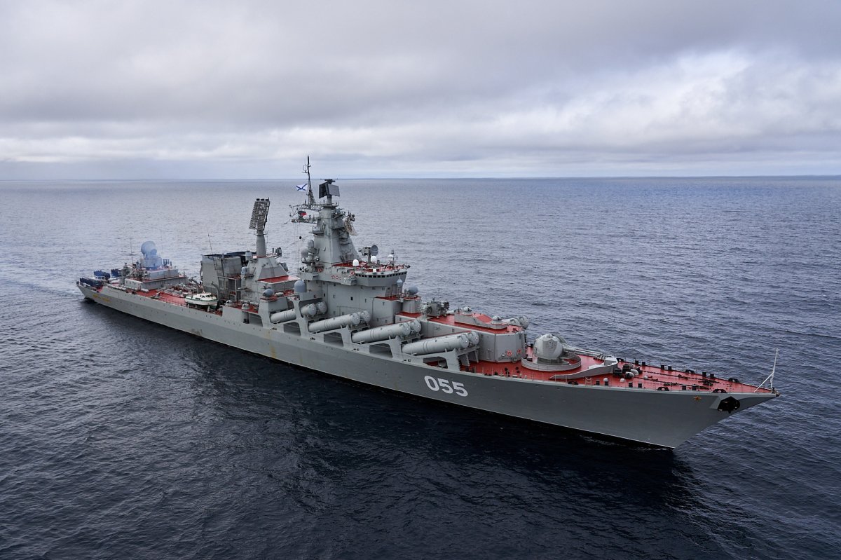 В акватории Баренцева моря экипаж ракетного крейсера «Маршал Устинов» поздравил экипаж гидрографического судна «Эхо» ВМС Великобритании с 80-летием первого союзного конвоя «Дервиш».
