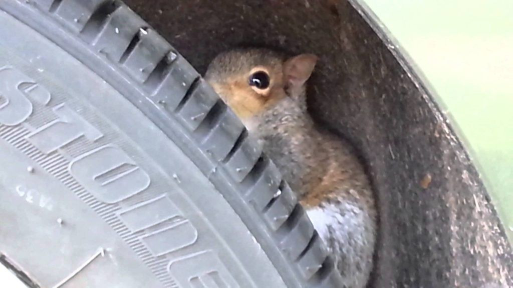 На видео видно, что белка удачно пробежала прямо под колесами автомобиля.