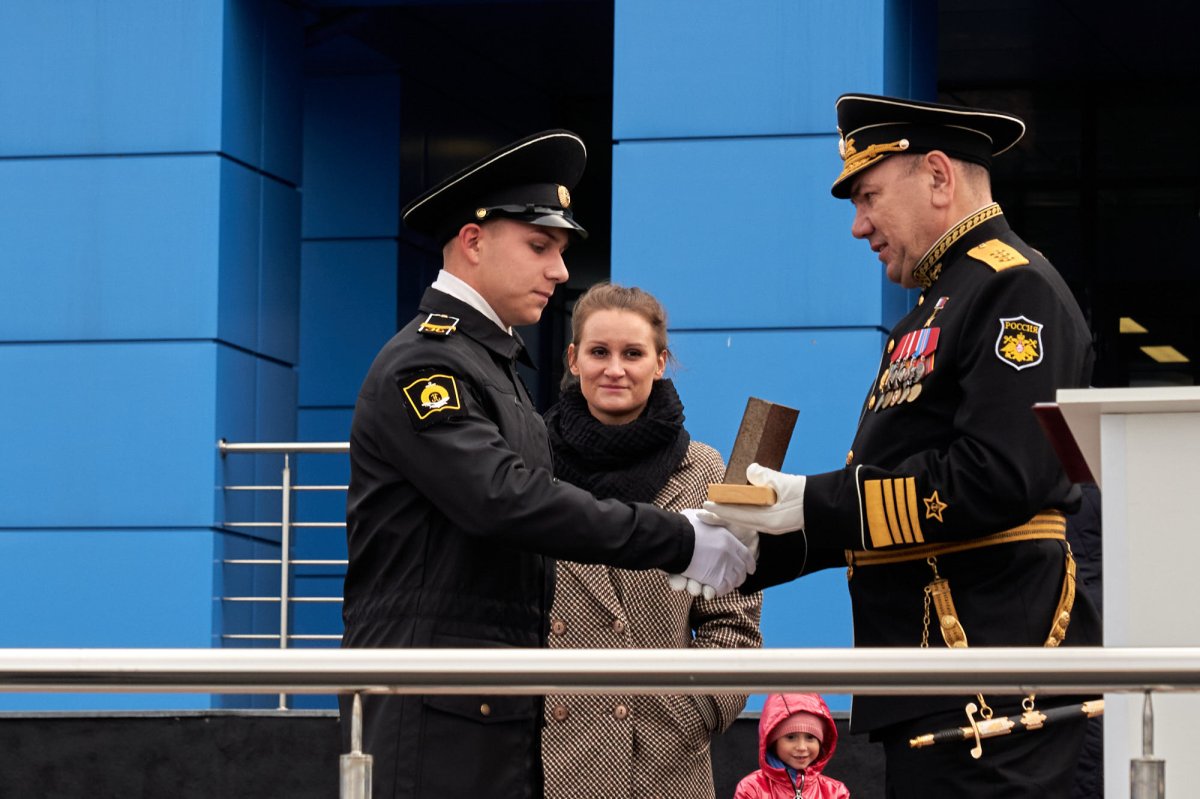 "Это символический подарок - пусть знания, которые даются вам здесь, будут такими же весомыми и прочными!" - отметил адмирал Александр Моисеев.