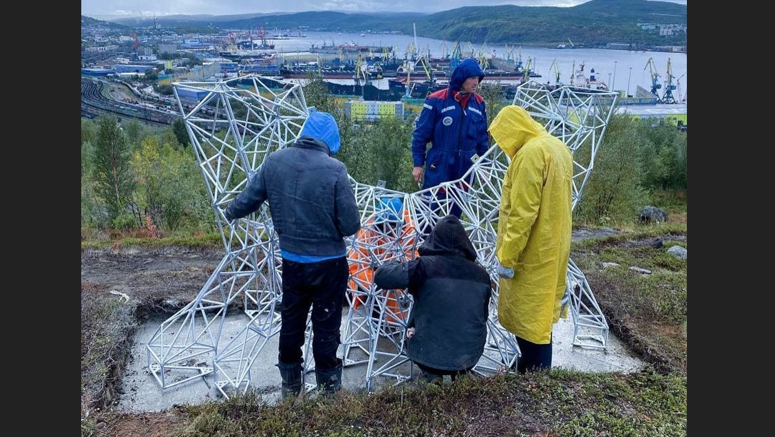 Скульптуру установили на холме с видом на Мурманский порт
