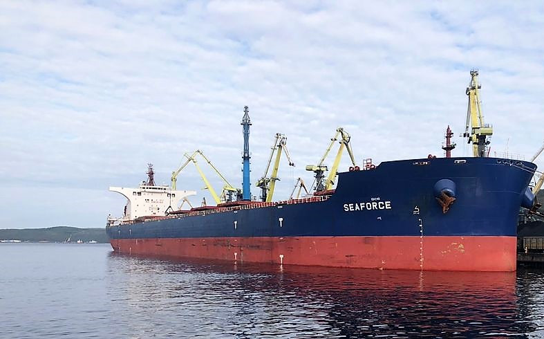 На причале № 14 грузового района № 2 на борт судна «SEAFORCE» относящегося к классу Capesize, погружено 160 300 тонн угля