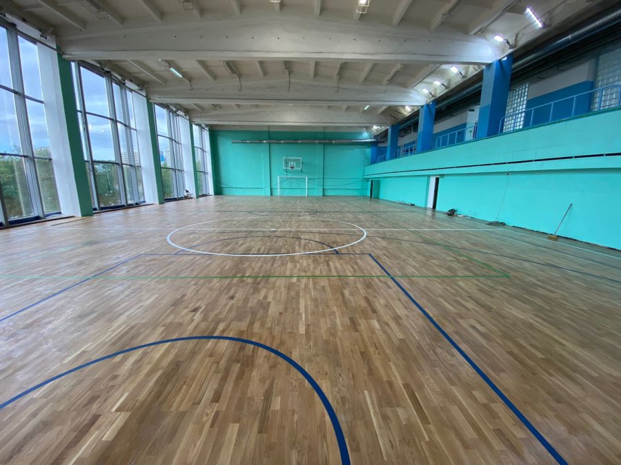 Капитальный ремонт Дома физкультуры начался во второй половине мая. За три месяца рабочие демонтировали старое покрытие и основание пола и уложили новые лаги и покрытие. Для покрытия были использованы более долговечные материалы. Работа была выполнена точно в срок и ремонтные работы закончились в конце августа. Юные спортсмены уже смогли воспользоваться отремонтированным спортивным залом.