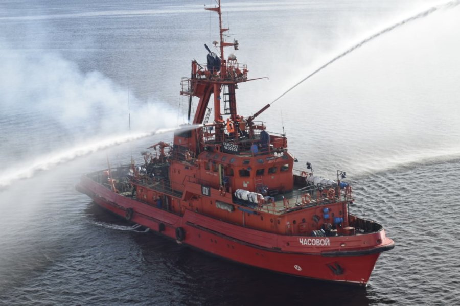 Второй вводной было сообщение об обнаружении плавающего объекта, который мог оказаться всплывшей миной времен Второй мировой войны. Объект был обнаружен многофункциональным аварийно-спасательным судном “Бахтемир” Северного филиала Морспасслужбы. На место находки выдвинулись Пограничное управление ФСБ России по Западному Арктическому району, Гидрографическая служба Северного флота, Региональный центр управления обороной штаба Северного флота, спасатели Северного филиала ФГБУ “Морспасслужба” и спасательный морской буксир “Микула”. Водолазы Центра по проведению спасательных операций особого риска “Лидер” МЧС России отвечали за пиротехнические работы на глубине.