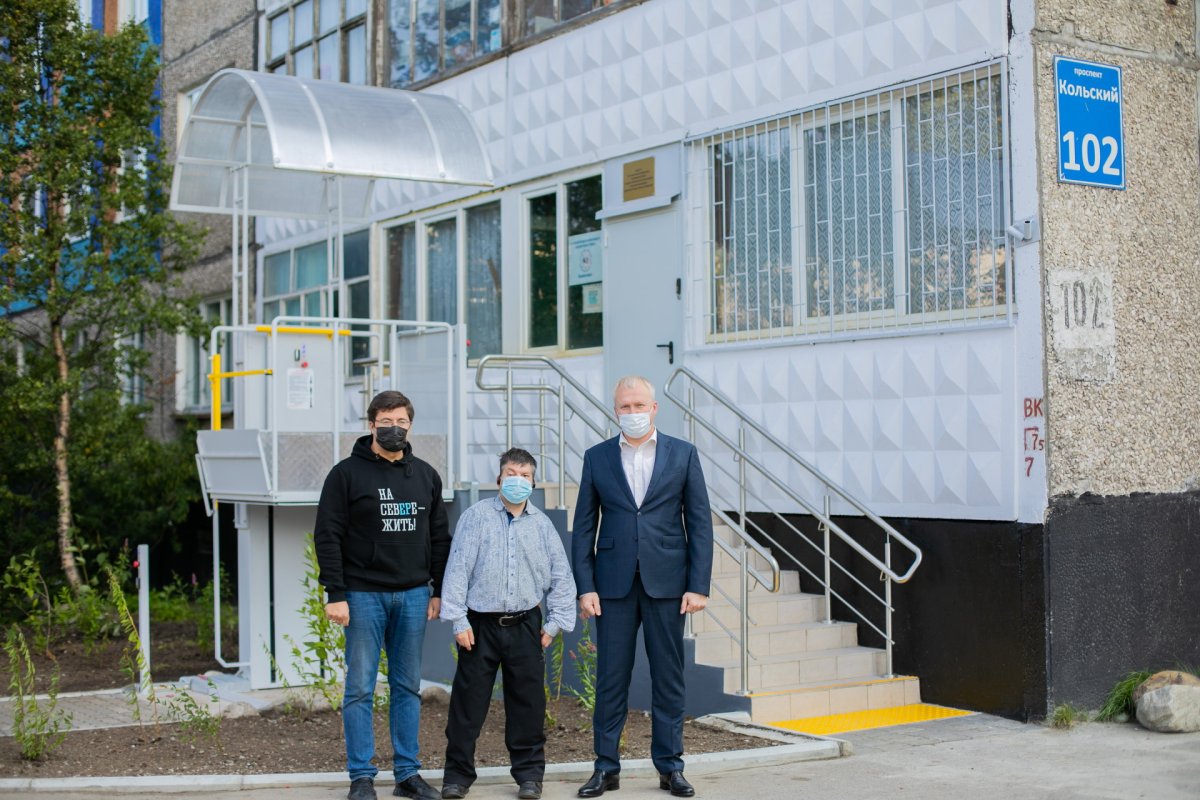 Завершена реконструкция входной группа помещения Клуба молодых инвалидов, их законных представителей, инвалидов детства «Валентина-плюс» в Мурманске. Генеральный директор АО «Мурманский морской торговый порт» Алексей Рыкованов, председатель Клуба «Валентина плюс» Артем Ермоленко и глава администрации города Мурманск Евгений Никора оценили результаты работ.