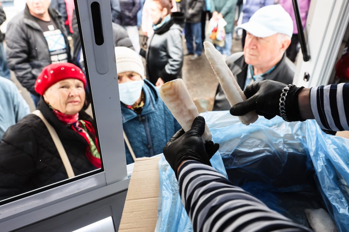 Одновременно с мобильной ярмаркой проходила стационарная ежесубботняя ярмарка в ТЦ «Форум», где за день было продано еще более двух тонн «охлажденки».