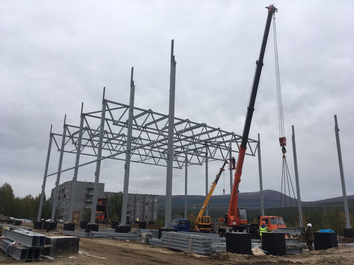 Строительство физкультурно-оздоровительного комплекса со специализированной школой по самбо, дзюдо и вольной борьбе продолжается в Кандалакше. Подрядчик уже забетонировал 69 столбчатых фундаментов из 81. Начался монтаж металлоконструкций. Возведён контур основного зала.