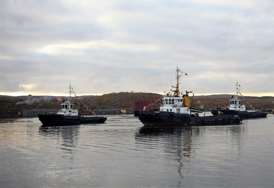 Только что в акватории Кольского залива малые суда компании «МАСКО» исполнили в честь 106-летия Мурманского морского торгового порта «Вальс буксиров». Филигранное мастерство показали члены команд буксиров «Грумант» (капитан - Сергей Родионов), «Гелиос» (капитан - Николай Момотов), «Канин» (капитан - Дмитрий Долиба).