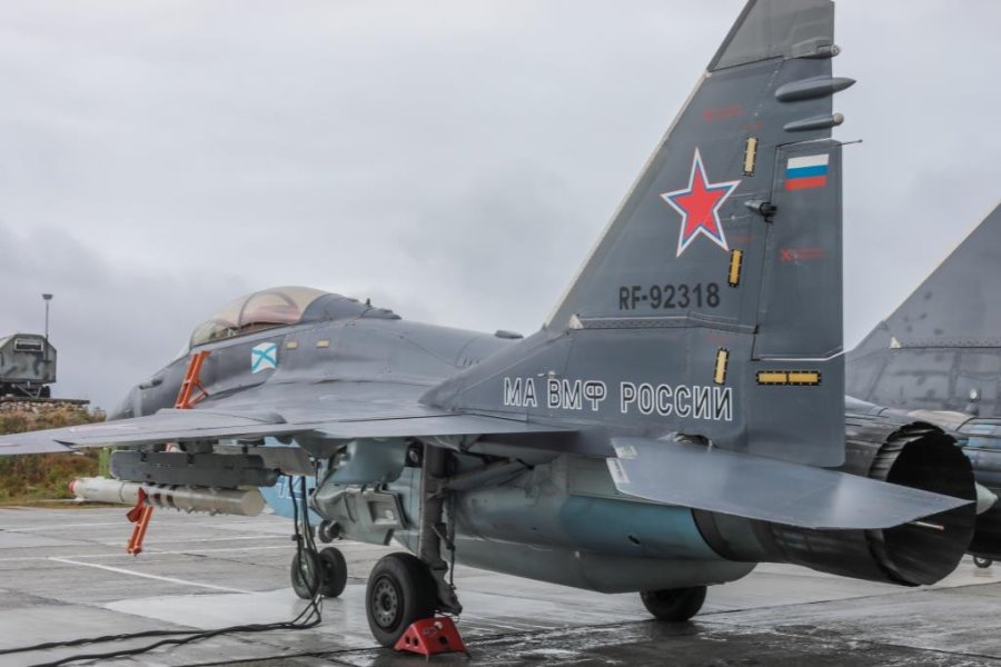 Пилоты палубных истребителей МиГ-29К отдельного корабельного авиаполка Северного флота поднимались в небо при низкой облачности в порывистом ветре. Проведение полетов в сложных метеоусловиях над Кольским полуостровом и Баренцевым морем требовалось для получения и подтверждения допуска лётного состава.