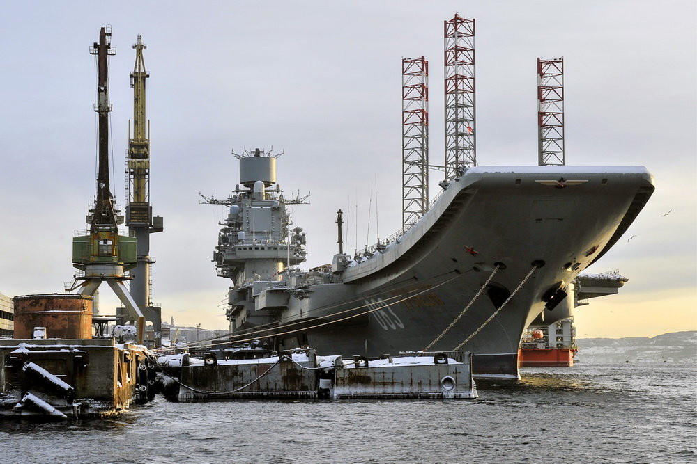 Авианосец проходит ремонт на 35 судоремонтном заводе в Мурманске. За время, пока он находится на модернизации, с ним произошло несколько инцидентов. Так, в 2018 году затонул плавучий док, в результате чего подъёмный кран повредил часть палубы и погибли люди. В 2019 году на борту произошёл пожар, в результате которого также погибли люди.