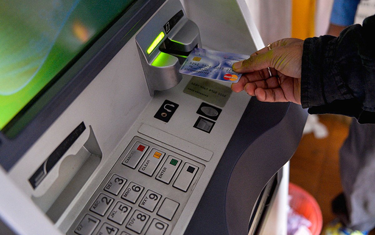 Посетитель банка взял мусорную корзину и стал бить ей по банкомату. Затем он выбил стекло двери, ведущей внутрь помещения.