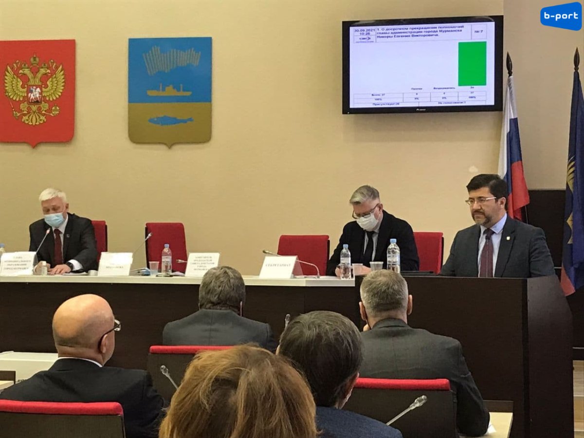 Глава Мурманска Михаил Белошеев и глава администрации Евгений Никора ушли в отставку. Решение об принято депутатами городского Совета депутатов на внеочередном заседании в четверг, в связи с личными заявлениями Михаила Белошеева и Евгения Никоры и их избранием депутатами Мурманской областной Думы.