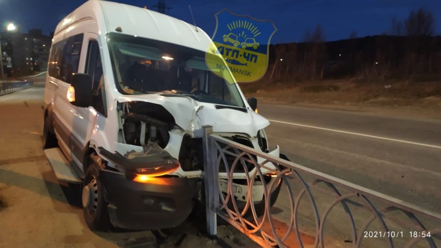 В пятницу в Мурманске в районе дома №31 на Верхне-Ростинском шоссе произошло ДТП. Микроавтобус “Ford” врезался в пешеходное ограждение.