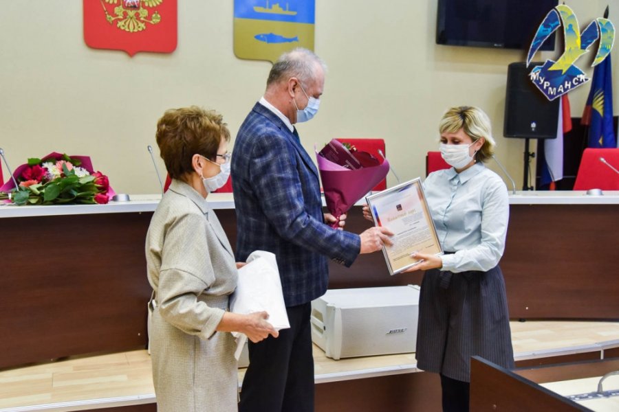 В администрации Мурманска 11 октября состоялась торжественная церемония награждения участников и организаторов Дня города. Памятные адреса и подарки вручал зампредседателя Совета депутатов Андрей Сысоев.