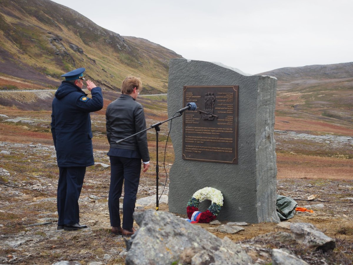Накануне открытия памятника прошла церемония возложения венков в море у скалы Андоттен – именно там разбился самолет с советскими солдатами. Установка памятника прошла в результате инициативы России в 2017 году.