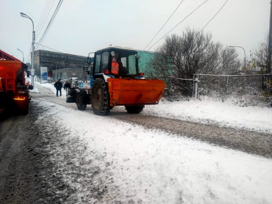 Уборщики также расчищают дороги от снега. Например, проспект Кирова - Шмидта, Портовый проезд и съезд на улицу Траловую расчищали колоннами спецтехники. За минувшие сутки в уборке были задействованы 104 единицы техники и 143 уборщика. Режим работы подразделения механизированной уборки круглосуточный.