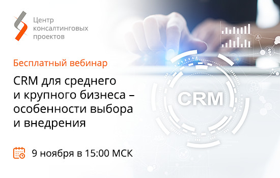 Центр консалтинговых проектов приглашает представителей руководящего состава коммерческих компаний на вебинар «CRM для среднего и крупного бизнеса – особенности выбора и внедрения».