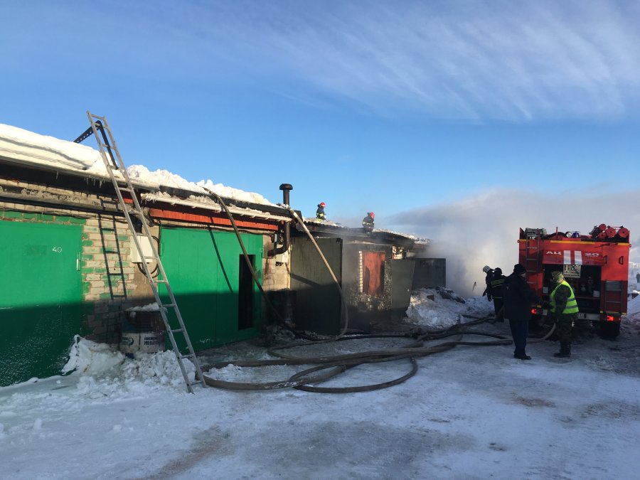 Были также вскрыты ворота двух соседних гаражей. Горение в них отсутствовало, но наблюдалось сильное задымление и были закопчены стены и потолок.