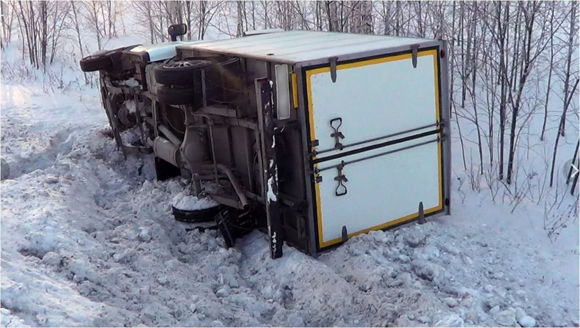 Так, в начале седьмого вечера на 1326 км +500м региональной трассы "Кола" в Кольском районе грузовик съехал с дороги на обочину и опрокинулся.