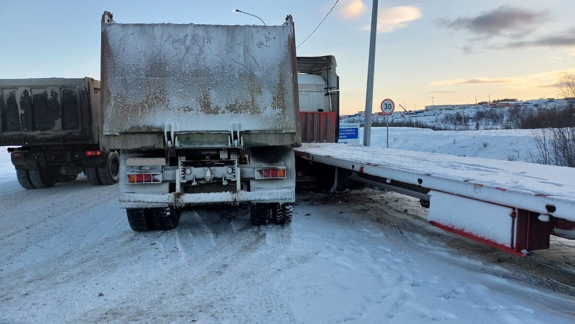 В Мурманской области на 13 километре автодороги Мишуково - Снежногорск днем 7 ноября произошла авария с участием двух грузовых автомобилей. Об этом сообщили в региональном ГУ МЧС.