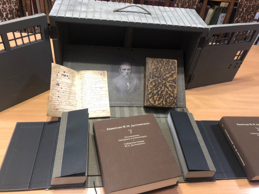 Издание состоит из комплекта книг: полная копия Евангелия с пометками писателя, работы исследователей и критиков, а также впервые изданная тюремная "Сибирская тетрадь". В ней автор собирал тюремную лексику. Книги заключены в деревянный ящик и заперты на тюремный засов.