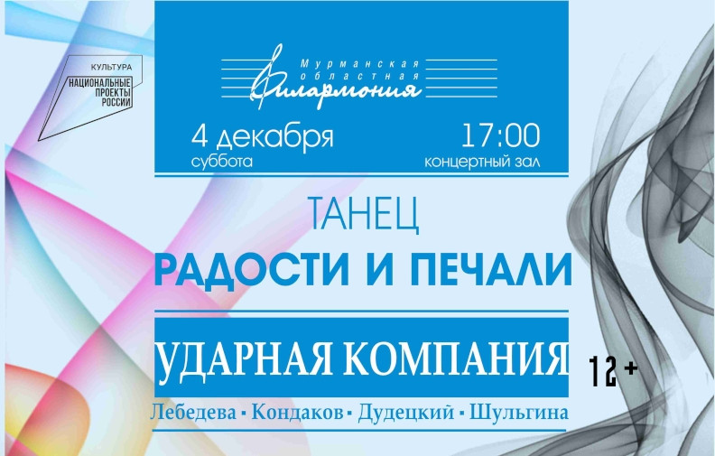 Мурманская областная филармония приглашает 4 декабря в 17 часов на концерт «Танец радости и печали» ансамбля «Ударная компания».