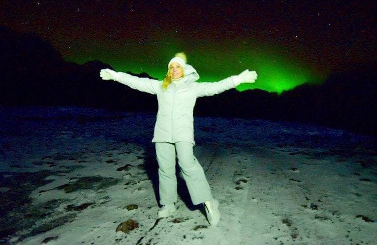 “Спасибо жизни за возможность видеть такую красоту”, – прокомментировала Мария Третьякова фото с собой на фоне северного сияния.